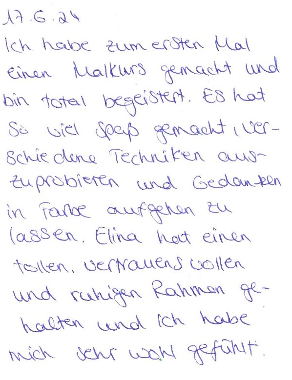 – Überrascht werden von Neuem, Impulsen von Elina + Eigenen, das entstehen darf/kann